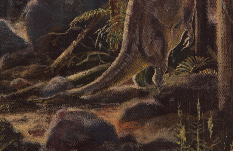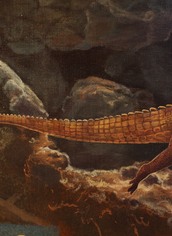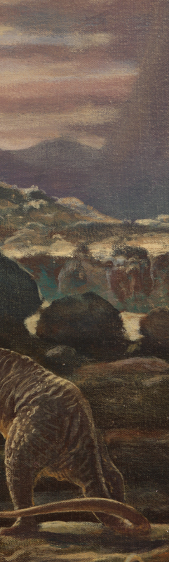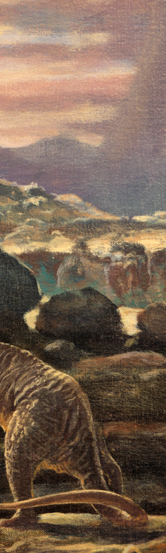 This and the remaining dinosaur show examples were shot from a mural at the museum. In this case the artist worked across 2 sections of canvas. I sought to keep the painting feel to the images, but the seam was a bit much.