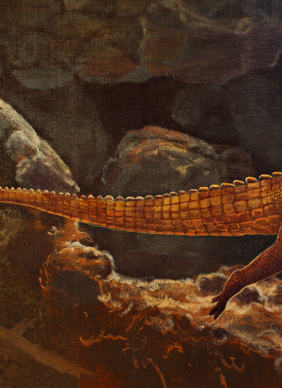 This and the remaining examples from the dinosaur show production were from the museum’s collection and displays. The photography and editing are mine, but I did not feel at liberty to post the entire images. The crops should give an idea of the editing that was done. In this case, after lighting was controlled, some glare remained.