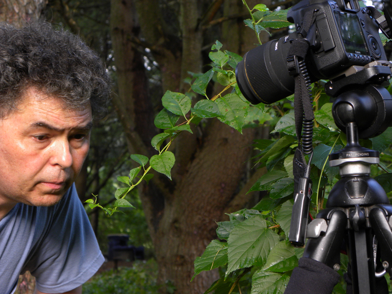 I needed a shot of me doing nature photography. The woods next door worked except for the junk couch in the background.