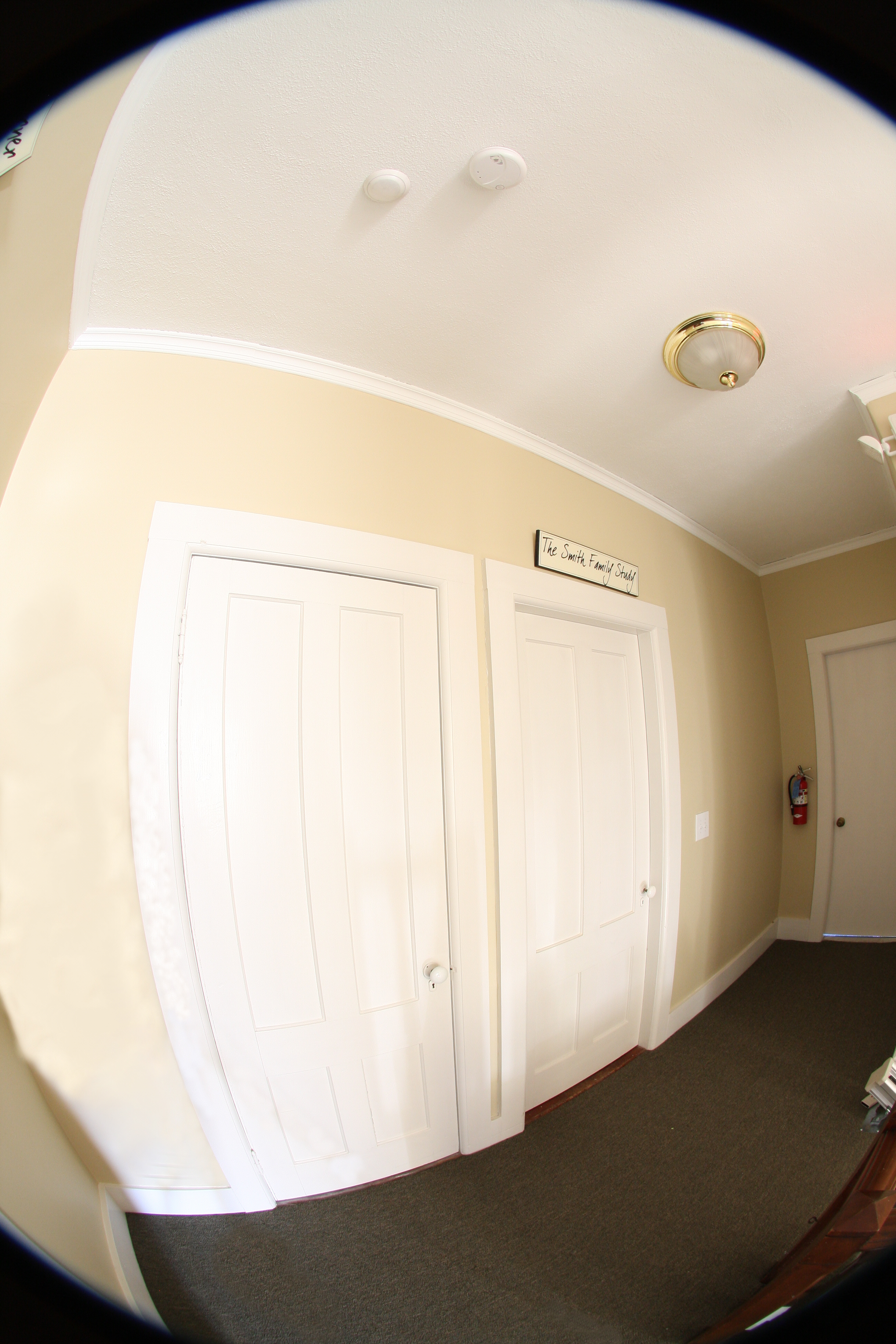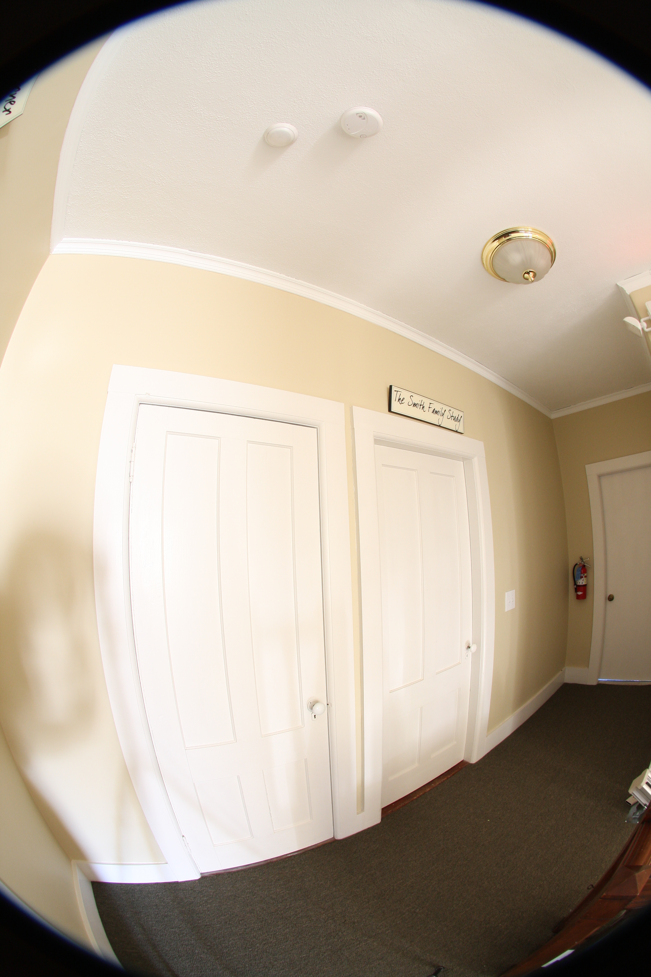 There was no way to block the light from down the hall from casting my shadow. Again, the vignetted corners and fringing will be merged out in the final scene.