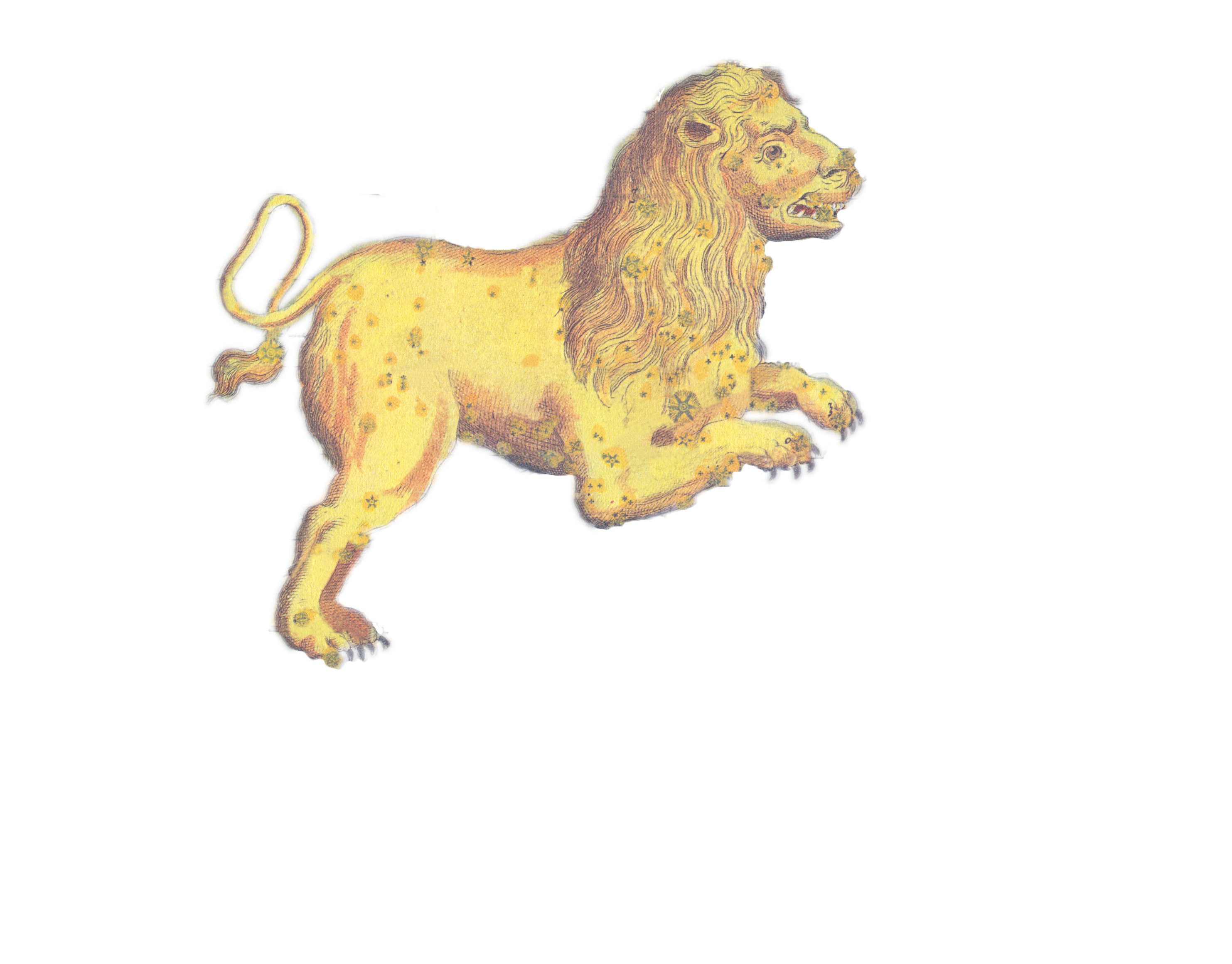 This set and the next are for starmap images I am making for one of my other web sites. I want just the lion and not any of the celestial lines. The image is from an old star atlas by Bode, and is public domain.